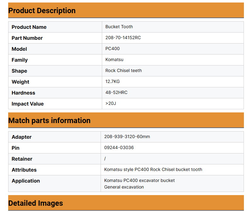 208-70-14152RC Komatsu excavator rock bucket teeth are suitable for Komatsu PC400 Images |